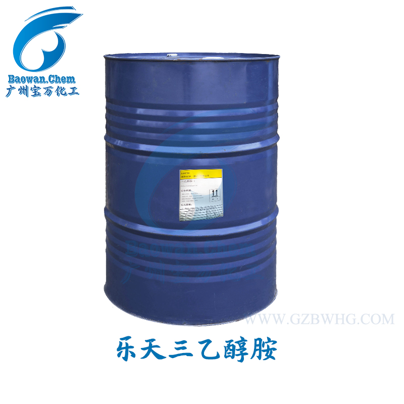 性状:无色至淡黄色透明粘稠液体,微有氨味,低温时成为无色至淡黄色立方晶系晶体。露置于空气中时颜色渐渐变深。易溶于水、乙醇、丙酮、甘油及乙二醇等,微溶于苯、乙醚及四氯化碳等,在非极性溶剂中几乎不溶解。5℃时的溶解度:苯4.2%、乙醚1.6%、四氯化碳0.4%、正庚烷小于0.1%。呈强碱性,0.1mol/L的水溶液pH为10.5。有刺激性。具吸湿性。能吸收二氧化碳及硫化氢等酸性气体。纯三乙醇胺对钢、鉄、镍等材料不起作用,而对铜、铝及其合金有较大腐蚀性。与一乙醇胺及二乙醇胺不同之处是,三乙醇胺与碘氢酸(HI)能生成碘氢酸盐沉淀。可燃。低毒。避免与氧化剂、酸类接触。