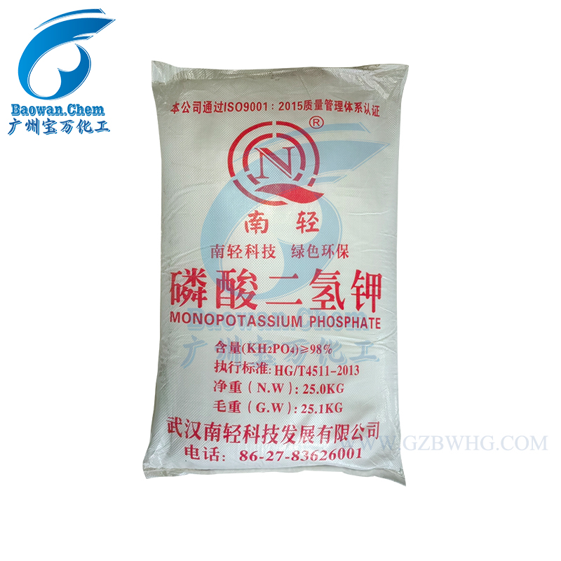 农业上用作高效磷钾复合肥;磷酸二氢钾产品广泛适用于各类型经济作物、粮食、瓜果、蔬菜等几乎全部类型的作物,各省均由当地的农科院所、土肥站等专家机构针对磷酸二氢钾适用于各类典型作物进行了很多的相关应用实验,通过各地对各类型作物的实际施用效果证明磷酸二氢钾具有显著增产增收、改量优化品质、抗倒伏、抗病虫害、防治早衰等许多优良作用,并且具有克服作物生长后期根系老化吸收能力下降而导致的营养不足的作用。磷酸二氢钾属新型高浓度磷钾二元素复合肥料,其中含五氧化二磷52%左右,含氧化二钾34%左右。烤烟需磷、钾量大,特别是需钾量大。磷酸二氢钾是用于烤烟的一种较为理想的新型肥料。为了探索磷酸二氢钾在烤烟上的使用价值和施用方法,以提高烟叶品质。磷酸二氢钾用在棉花上能够控制棉花徒长,增加植株花苞数量。磷酸二氢钾广泛运用于滴管喷灌系统中。