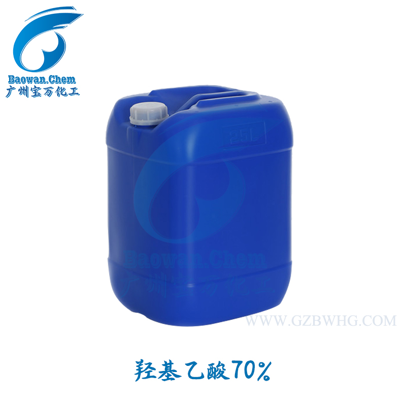 2. 用做清洗剂,能与设备中的锈垢、钙盐、镁盐等充分反应而达到除垢目的,很容易去除碳酸钙垢和铁垢,具有良好的处理效果。对材质的腐蚀性很低,且清洗时不会发生有机酸铁的沉淀。用羟基乙酸进行化学清洗危险性小,操作方便。