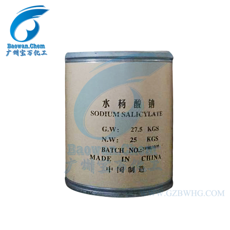 水杨酸钠,英文名:Sodium salicylate,白色鳞片或粉末,无气味,久露光线中变粉红色。溶于水、甘油,不溶于醚、氯仿、苯等有机溶剂。遇火可燃。主要用于止痛药和风湿药,也用作有机合成。可由水杨酸用碱中和结晶而得。