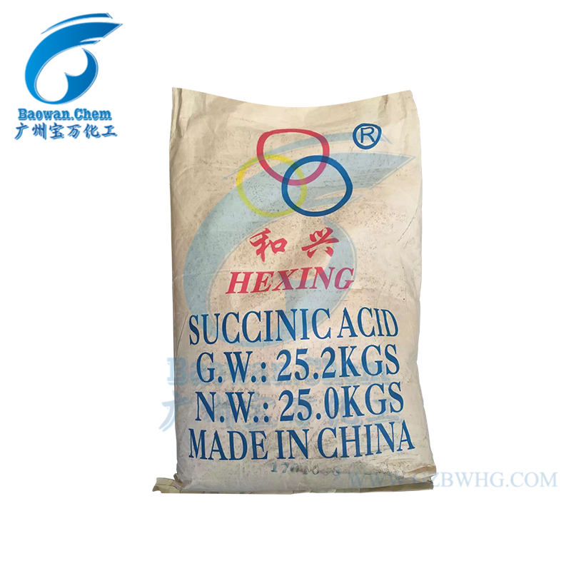 用作有机合成的原料。用途:琥珀酸已被美国 FDA 认定为GRAS(一般认为安全),这使得它可以用于多种用途。它是三羧酸循环(TCA)的中间产物,同时也是厌氧代谢的发酵产物之一琥珀酸广泛应用于医药、农药、染料、香料、油漆、食品、塑料等行业,也可以作为 C4 平台化合物,合成一些重要的化工产品如丁二醇、四氢呋喃、γ-丁内酯、n-甲基吡咯烷酮(NMD)、2-吡咯烷酮等,全世界市场需求量超过276000 t/a. 另外,琥珀酸还可用来合成可降解的生物聚合物,如聚丁烯琥珀酸酯(PBS)和聚酰胺,这使琥珀酸的市场需求量高达 27000000t/a.